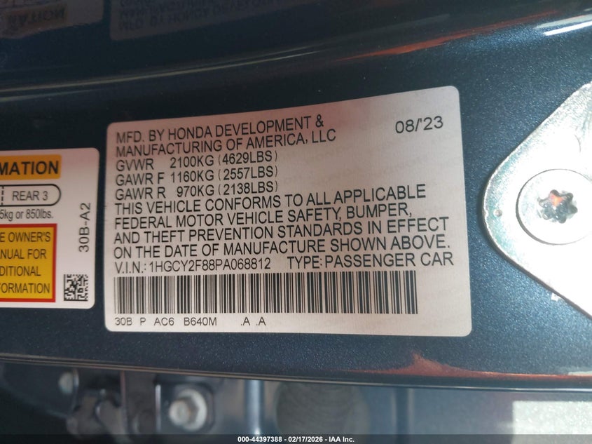 1HGCY2F88PA068812